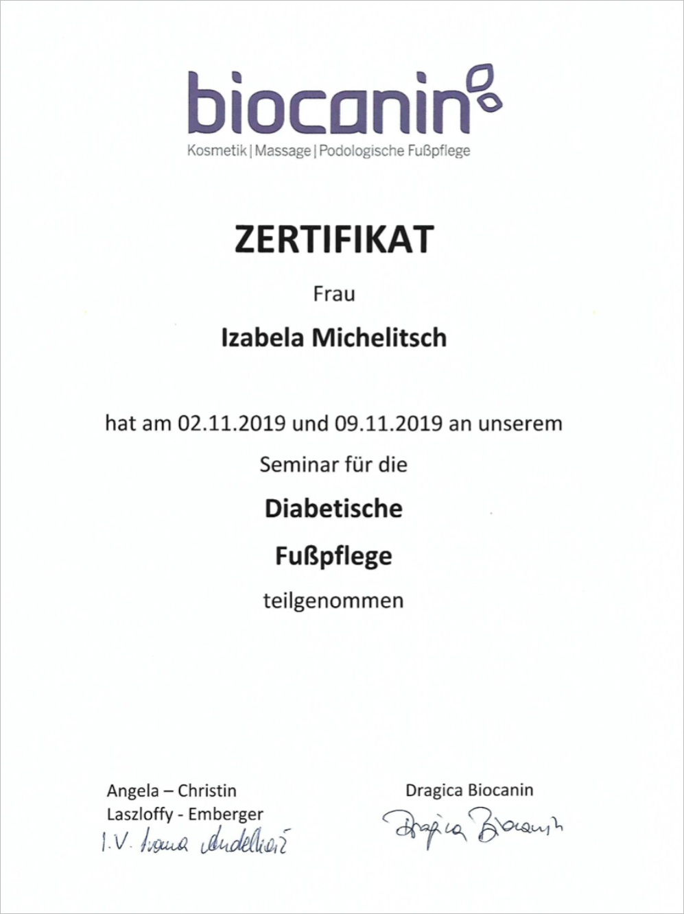 ist ausgebildete Kosmetikerin, Fußpflegerin (auch in diabetischer Fußpflege) und bildet sich laufend weiter, um stets auf dem neuesten Stand zu bleiben. Ihrer Erfahrung vertrauen sich zahlreiche Stammkundinnen und Stammkunden an.Sie findet auch für Sie die passende kosmetische Behandlung und Pflege in angenehmer Atmosphäre.